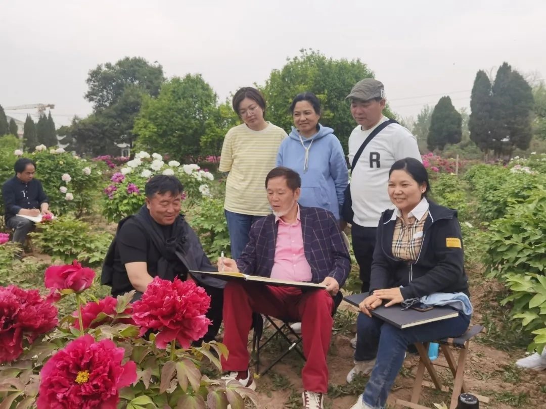自1975年29歲的何水法先生以赤子之心,首次只身赴菏澤,48年來,為畫牡丹,寫其牡丹之真情、寫其牡丹之風骨,寫其國花繁榮富強之真諦。用何水法先生世紀之初所言:“寫生是畫家與生活的對話”。藝術家也要不斷地站在時代的前列,站在歷史的高位,不斷思索,不斷地刷新繪畫語言。要緊隨時代發(fā)展的需要,不斷突破新題材、突破新意境。因此他今年又親率眾學生第十五次來菏澤深入考察,發(fā)揮示范引領作用,體驗生活、開闊思維,為謳歌人民、謳歌新時代,進行新的藝術創(chuàng)造。