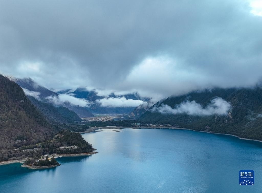 4月17日拍攝的巴松措(無(wú)人機(jī)照片)。