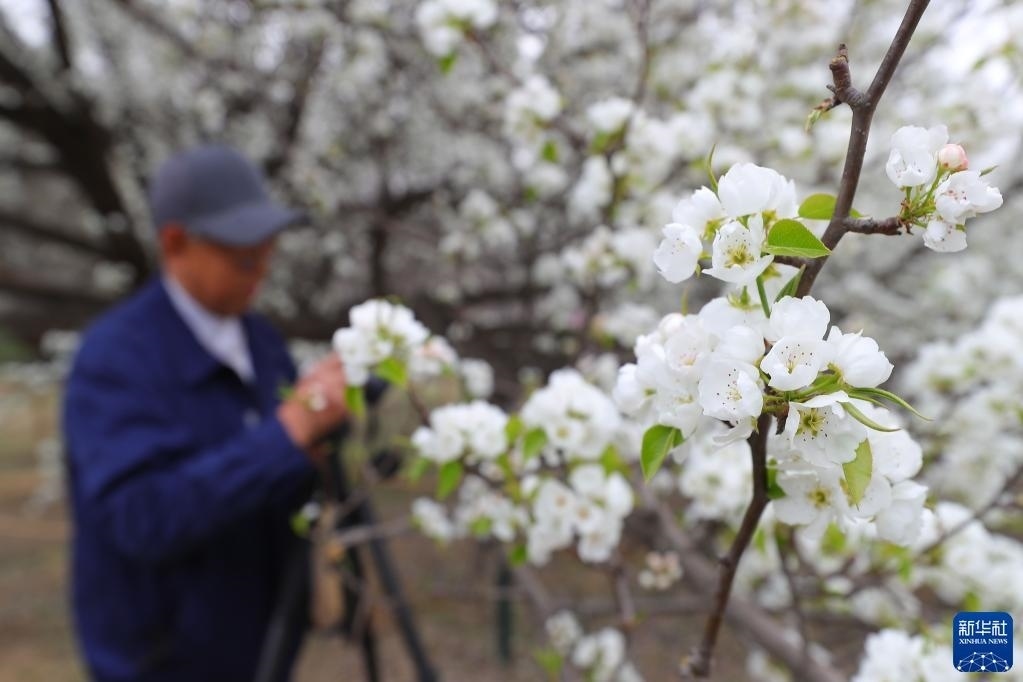 4月17日,攝影愛好者在拍攝梨花。