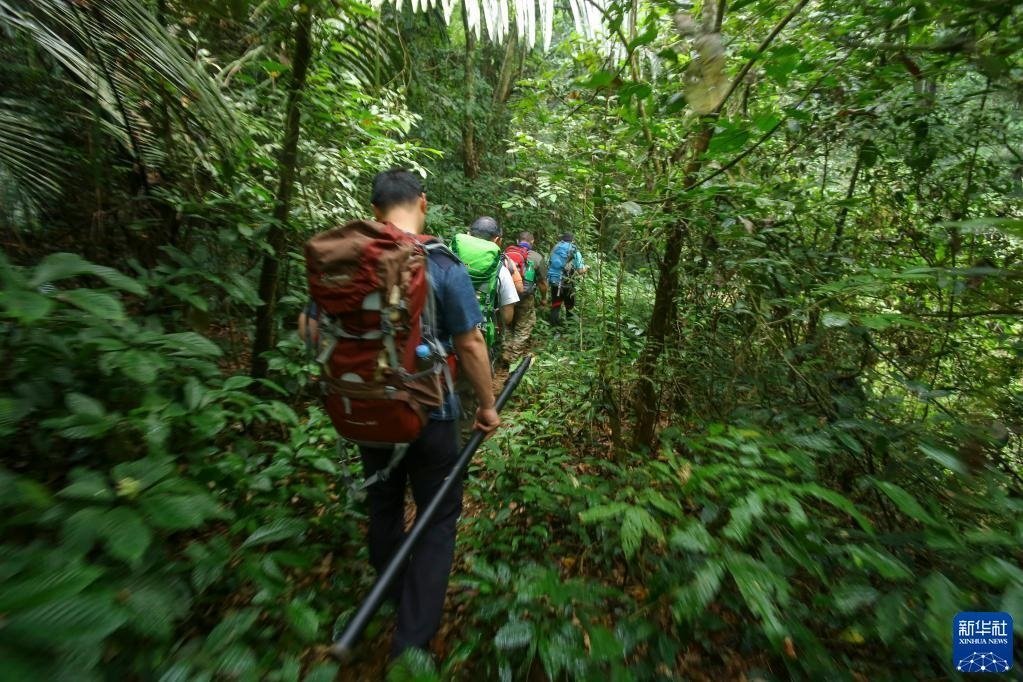 3月16日,聯(lián)合科考隊成員穿行在密林中。
