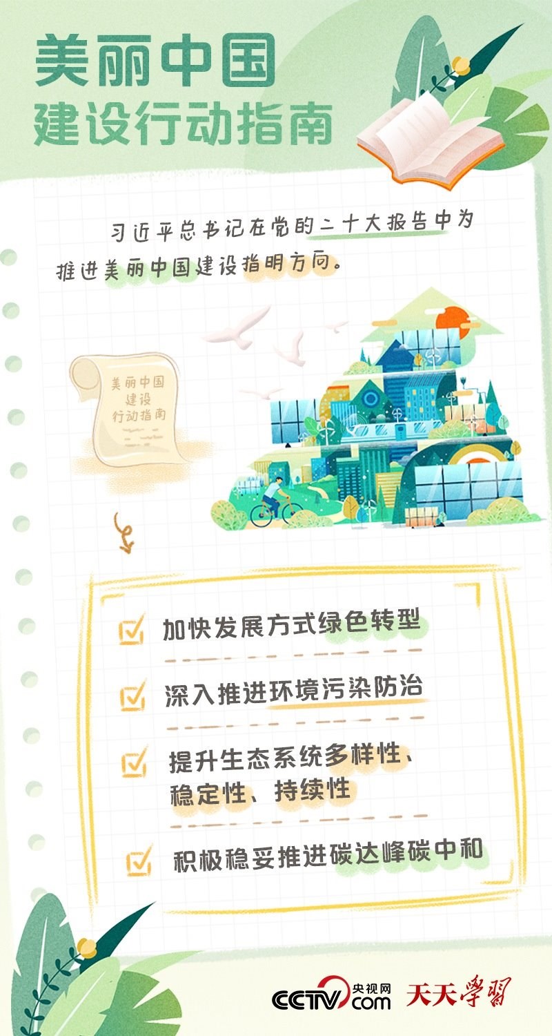 黨的十八大以來(lái),以習(xí)近平同志為核心的黨中央以前所未有的力度抓生態(tài)文明建設(shè),全黨全國(guó)推動(dòng)綠色發(fā)展的自覺(jué)性和主動(dòng)性顯著增強(qiáng),美麗中國(guó)建設(shè)邁出重大步伐。黨的二十大為美麗中國(guó)建設(shè)擘畫(huà)新藍(lán)圖:我們要推進(jìn)美麗中國(guó)建設(shè),堅(jiān)持山水林田湖草沙一體化保護(hù)和系統(tǒng)治理,統(tǒng)籌產(chǎn)業(yè)結(jié)構(gòu)調(diào)整、污染治理、生態(tài)保護(hù)、應(yīng)對(duì)氣候變化,協(xié)同推進(jìn)降碳、減污、擴(kuò)綠、增長(zhǎng),推進(jìn)生態(tài)優(yōu)先、節(jié)約集約、綠色低碳發(fā)展。一個(gè)天藍(lán)、地綠、水清的美麗中國(guó),漸行漸近。