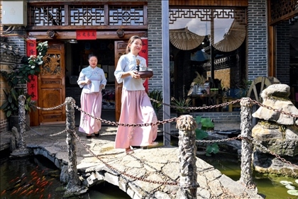 當(dāng)?shù)攸h委政府鼓勵村民參與旅游開發(fā),引入外地投資者修建特色度假民宿酒店,建起10多家高端民宿酒店。如今,村民們有的開民宿、農(nóng)家樂,有的到景區(qū)公司和民宿酒店工作,村里一派產(chǎn)業(yè)興、環(huán)境美、人氣旺的欣欣向榮景象。