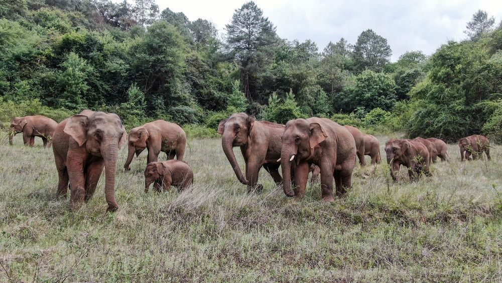 這是在云南省昆明市晉寧區(qū)雙河彝族鄉(xiāng)拍攝的野象(2021年6月3日攝)。