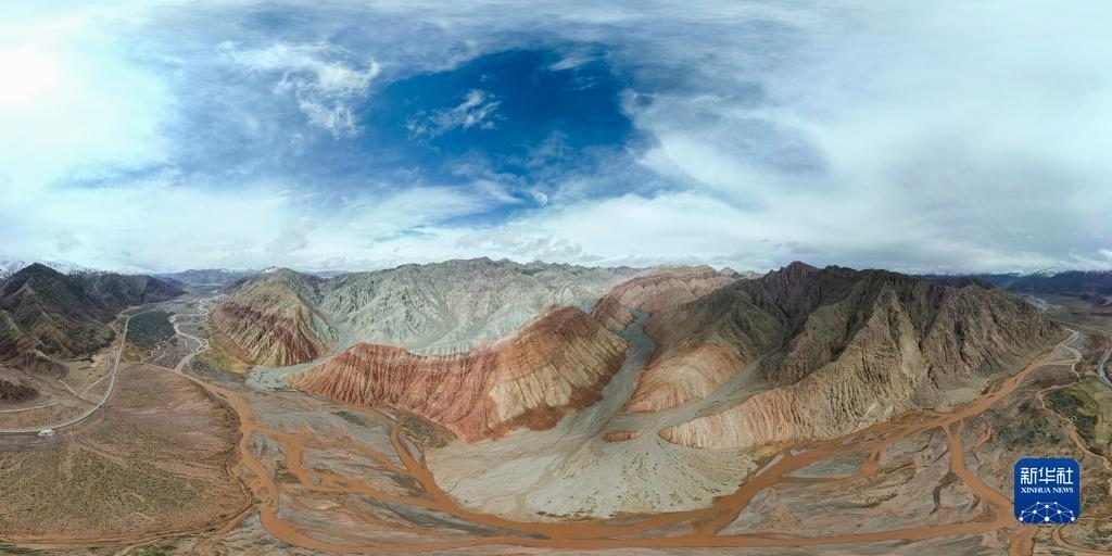 4月26日拍攝的天山-昆侖山交匯處(無(wú)人機(jī)全景照片)。
