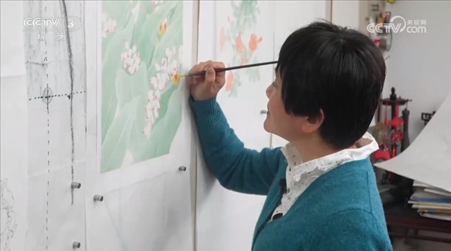 工筆花鳥(niǎo)畫家 上海市文史研究館館員 萬(wàn)芾:我這個(gè)老師一輩傳給我們,我們?cè)傧耠A梯一樣,一代一代承接傳承下去,就有傳承,而且這種傳承,不是這種脫離了中國(guó)傳統(tǒng)繪畫的,我們始終有一根主脈抓得很牢
