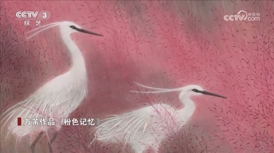 工筆花鳥(niǎo)畫家 上海市文史研究館館員 萬(wàn)芾:我們看到水泥柱子嘛,方的,這個(gè)波紋我是用山水畫里的披麻皴的皴法,形成水光瀲滟的效果,畫面也是用了一個(gè)比較抽象的點(diǎn)線面的元素來(lái)處理的,追求還是中國(guó)傳統(tǒng)繪畫里的氣韻生動(dòng),只是整個(gè)畫面第一感覺(jué)的形式讓人現(xiàn)代的感覺(jué)。
