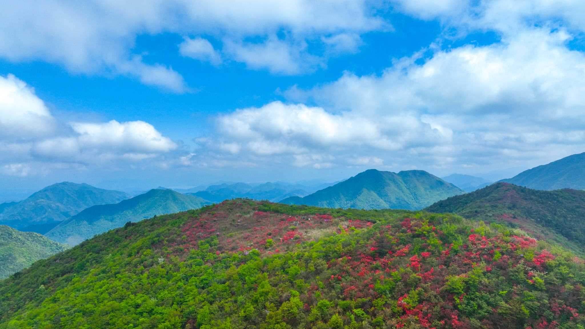 2023年4月26日,杭州,淳安縣楓樹嶺鎮(zhèn)白馬乳洞山自然村,海拔1320米的黃茅尖上千畝野生杜鵑花開正艷。視覺中國(guó)