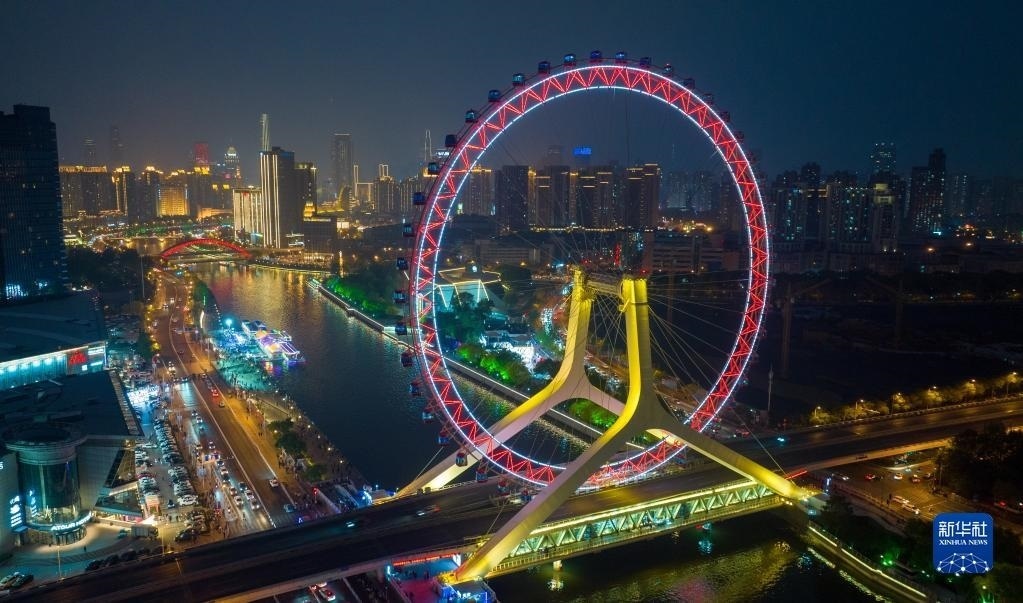 近日,天津市地標(biāo)景觀之一的“天津之眼”摩天輪完成整體更新改造,迎接即將到來的“五一”假期。此次提升改造更換了48個全新轎廂,包含12個內(nèi)設(shè)天屏和地屏的“智能科技”主題轎廂,用來播放天津文旅宣傳視頻,增強游客的觀景體驗感。新華社記者 孫凡越 攝