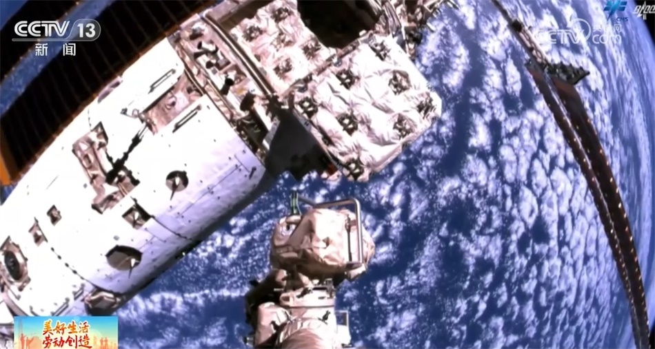 總臺(tái)央視記者 陶嘉樹(shù):這個(gè)就是貨運(yùn)飛船的貨物艙,航天員所需的食物、水、實(shí)驗(yàn)設(shè)備等物資都是裝在這里“快遞”到空間站的。這個(gè)就是貨運(yùn)飛船與空間站的對(duì)接口,航天員就是通過(guò)這個(gè)對(duì)接口進(jìn)入貨運(yùn)飛船的。