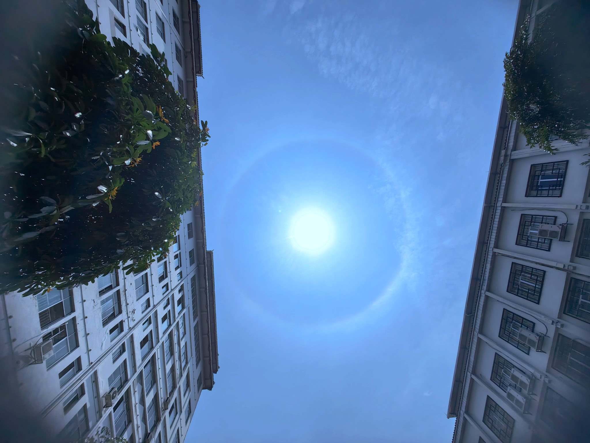 2023年4月30日,廣西來(lái)賓,忻城縣上空出現(xiàn)日暈景觀。視覺中國(guó)