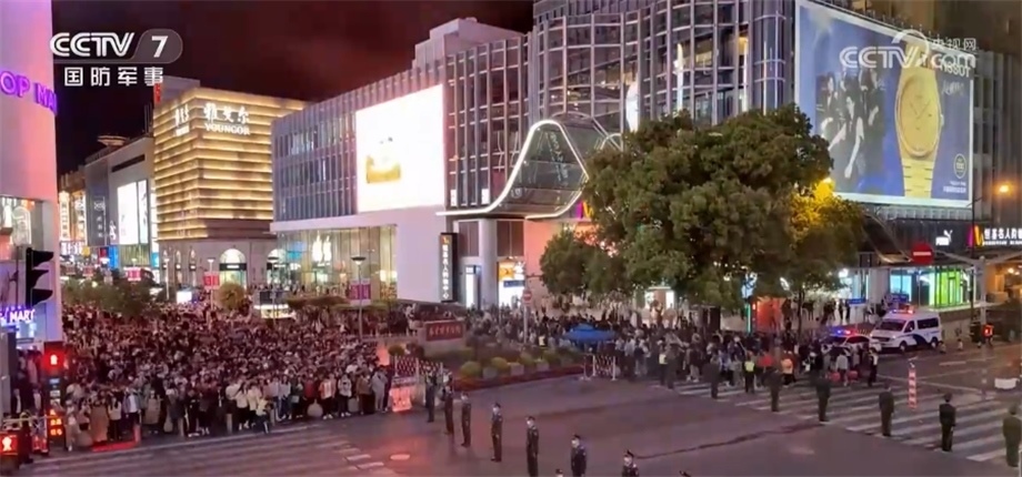 假期的上海外灘人流如織,單日累計客流量達(dá)到27萬人左右,執(zhí)勤官兵組成拉鏈?zhǔn)饺藟?,引?dǎo)市民游客有序通過。