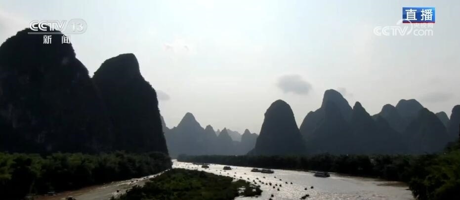 桂林山水甲天下,漓江沿線正是桂林山水最典型的代表?,F(xiàn)在已經(jīng)是廣西的汛期,降雨開(kāi)始增多。大家通過(guò)畫面可以看到,漓江的水不像前幾天那樣清澈,這是因?yàn)榍疤欤鹆謩倓偨?jīng)過(guò)一場(chǎng)強(qiáng)降雨,上游來(lái)水增加。在漓江之上,無(wú)論陰晴雨霧,都是不同的風(fēng)景。像今天這樣的晴天麗日,在漓江上穿行就像在欣賞一幅青綠山水;而在陰雨天,又像是穿行在傳統(tǒng)的水墨畫之中。根據(jù)桂林海事部門預(yù)測(cè),“五一”假期,桂林水上發(fā)送旅客量超過(guò)30萬(wàn)人次,這幾天旅游公司的船票基本上都是提前售完的狀態(tài)。