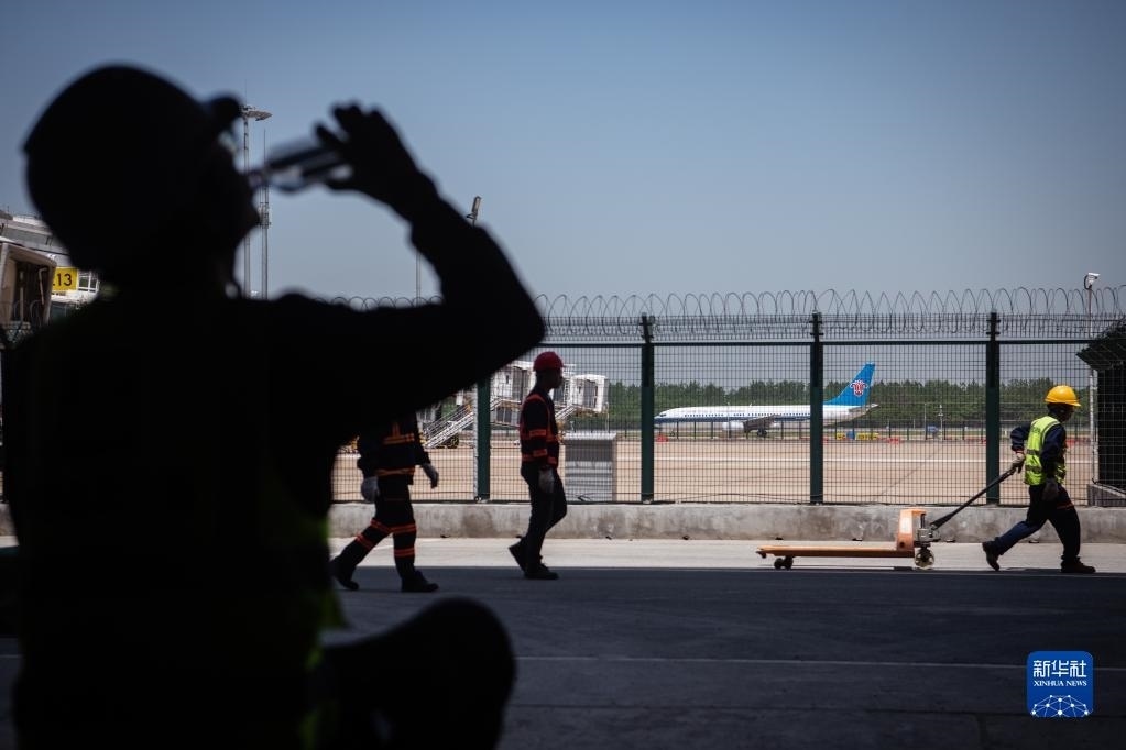 5月1日,在中建三局承建的武漢天河機場T2航站樓改造工程項目工地,工人在作業(yè)間隙休息。