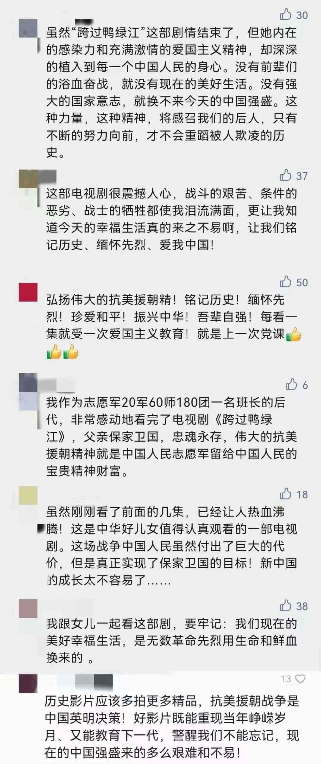 “抗美援朝絕對(duì)是值得紀(jì)念和謳歌的奇跡!這部電視劇是一部愛國(guó)主義教育的活教材!”這是網(wǎng)友對(duì)這部劇的評(píng)價(jià)。