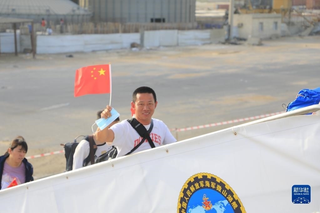 4月29日,從蘇丹撤離的中國公民乘坐中國海軍微山湖艦抵達沙特阿拉伯吉達港。新華社記者 王海洲 攝