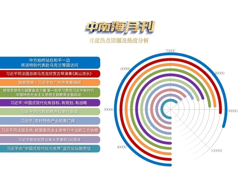 央視網“智聞”系統(tǒng)提取分析4月全網時政新聞熱點顯示,“中方始終站在和平一邊,將派特別代表赴烏克蘭等國訪問”“中法元首非正式會晤”“習近平在廣州市考察調研”等話題備受關注。