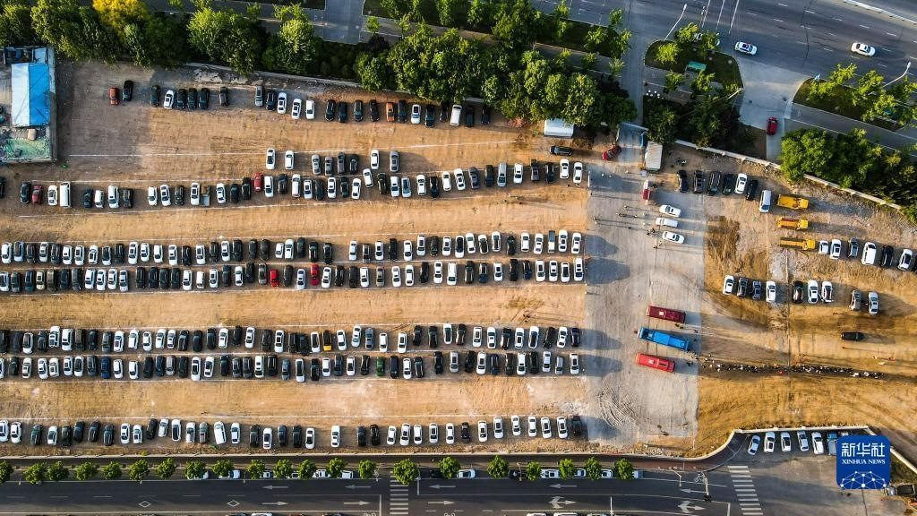 這是4月29日拍攝的淄博市臨淄區(qū)新建可容納1200輛車的臨時(shí)停車場(chǎng),該停車場(chǎng)供游客免費(fèi)停車(無(wú)人機(jī)照片)。