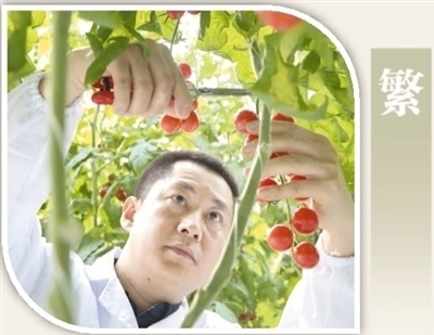 江蘇省昆山市陸家鎮(zhèn)未來(lái)農(nóng)業(yè)示范園中,技術(shù)人員在采摘新選育出的西紅柿品種。許叢軍攝(人民視覺(jué))
