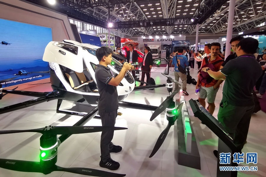 這是廣交會上展示的億航載人和運輸無人機(4月15日攝)。新華網 盧鑒 攝