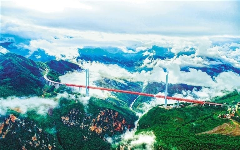 蒼龍起舞,飛虹掛天,一座座貴州橋跨越黔山貴水,讓天塹變通途。“地?zé)o三里平”的貴州,由此實(shí)現(xiàn)了從“千溝萬壑”到“高速平原”的躍遷。