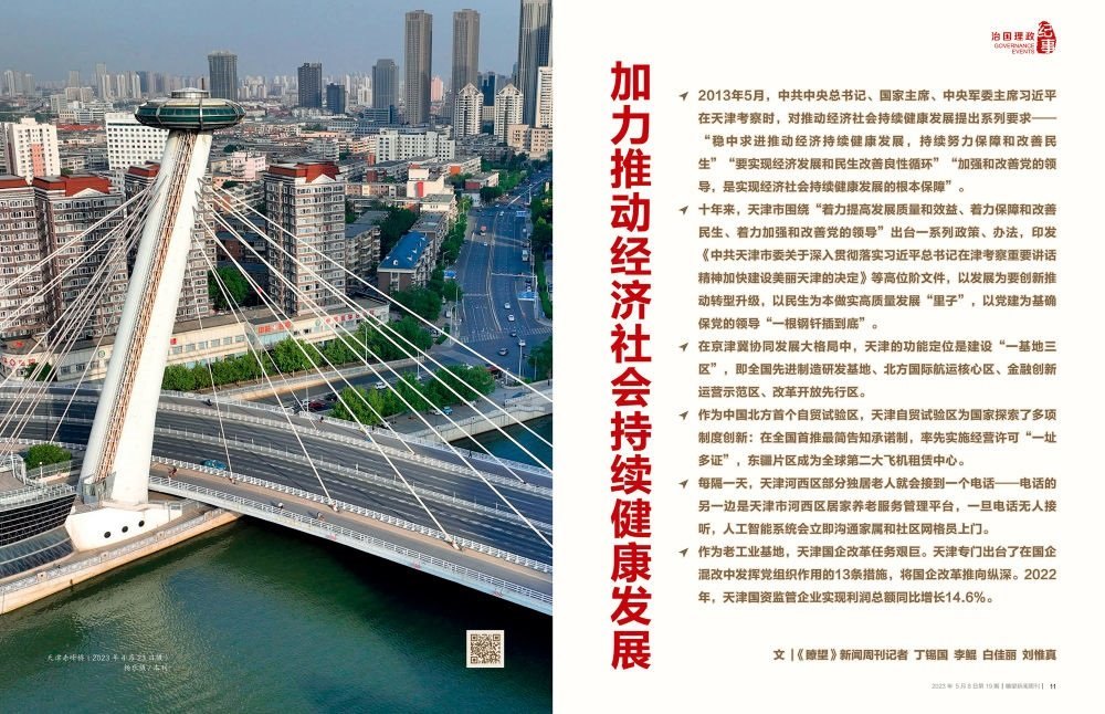 時光回到十年前。2013年5月,中共中央總書記、國家主席、中央軍委主席習近平在天津考察時,對推動經(jīng)濟社會持續(xù)健康發(fā)展提出系列要求——“穩(wěn)中求進推動經(jīng)濟持續(xù)健康發(fā)展,持續(xù)努力保障和改善民生”“要實現(xiàn)經(jīng)濟發(fā)展和民生改善良性循環(huán)”“加強和改善黨的領導,是實現(xiàn)經(jīng)濟社會持續(xù)健康發(fā)展的根本保障”。