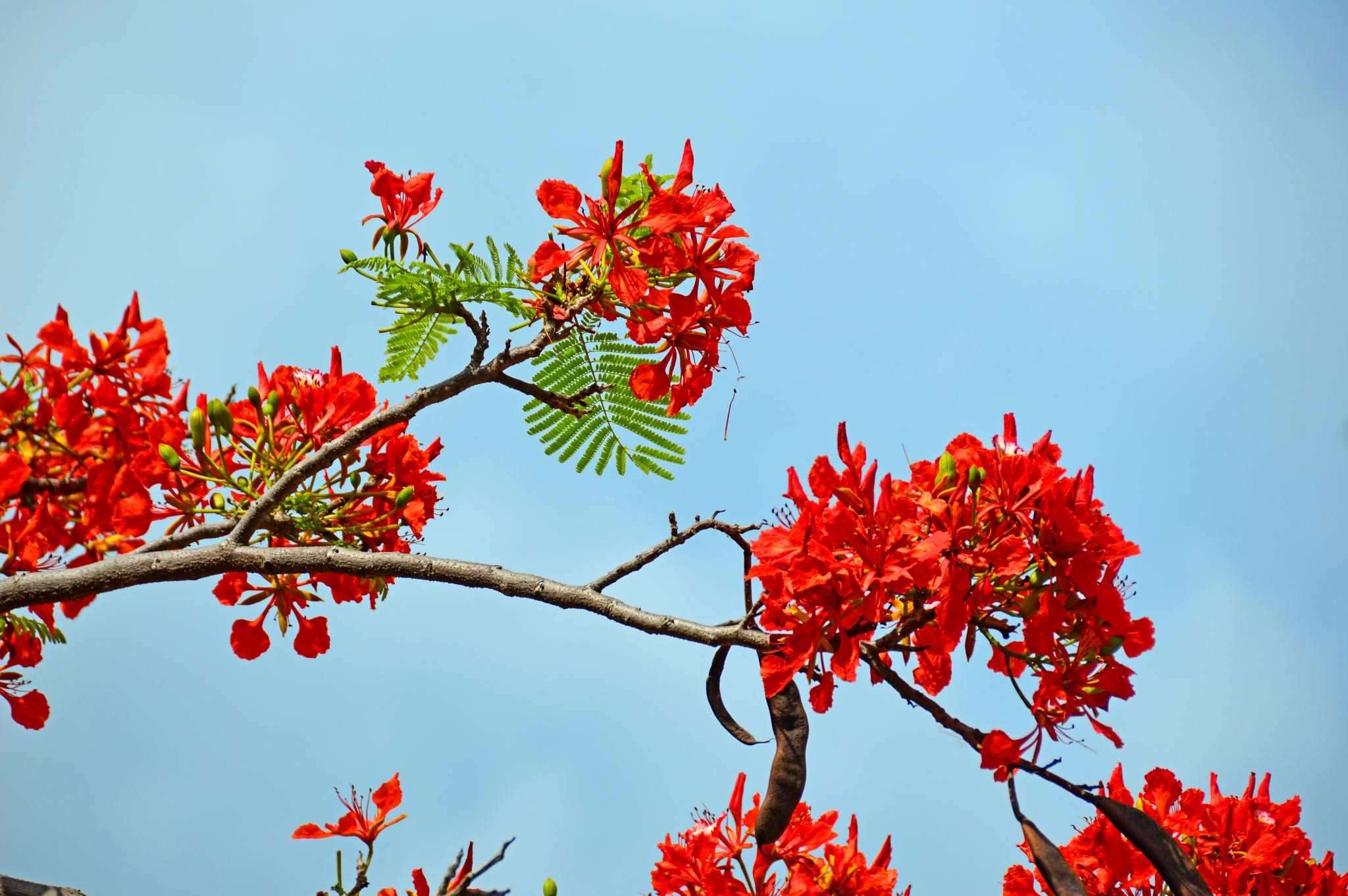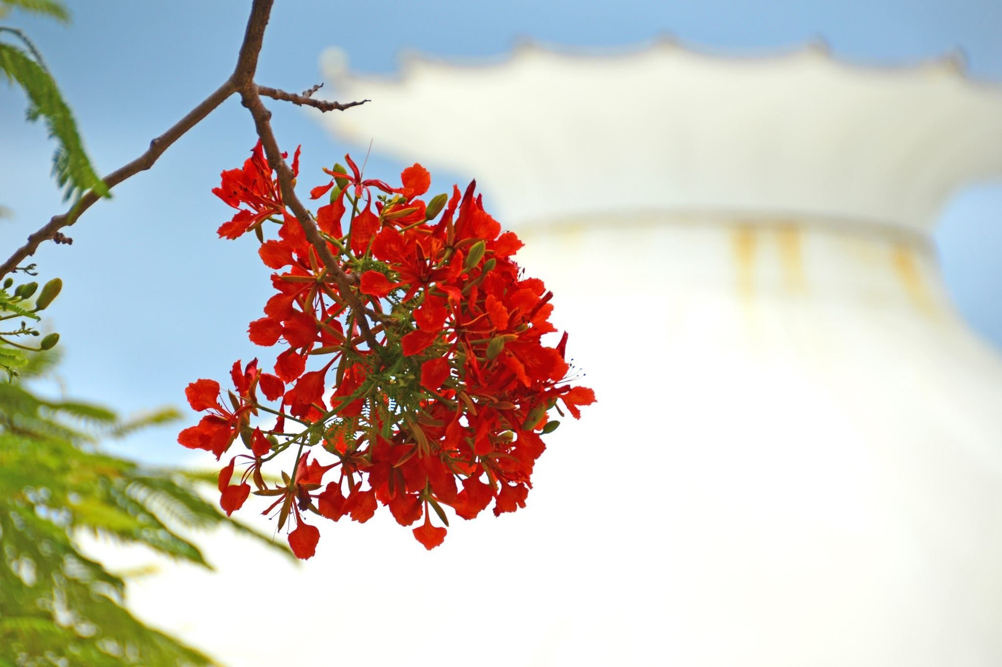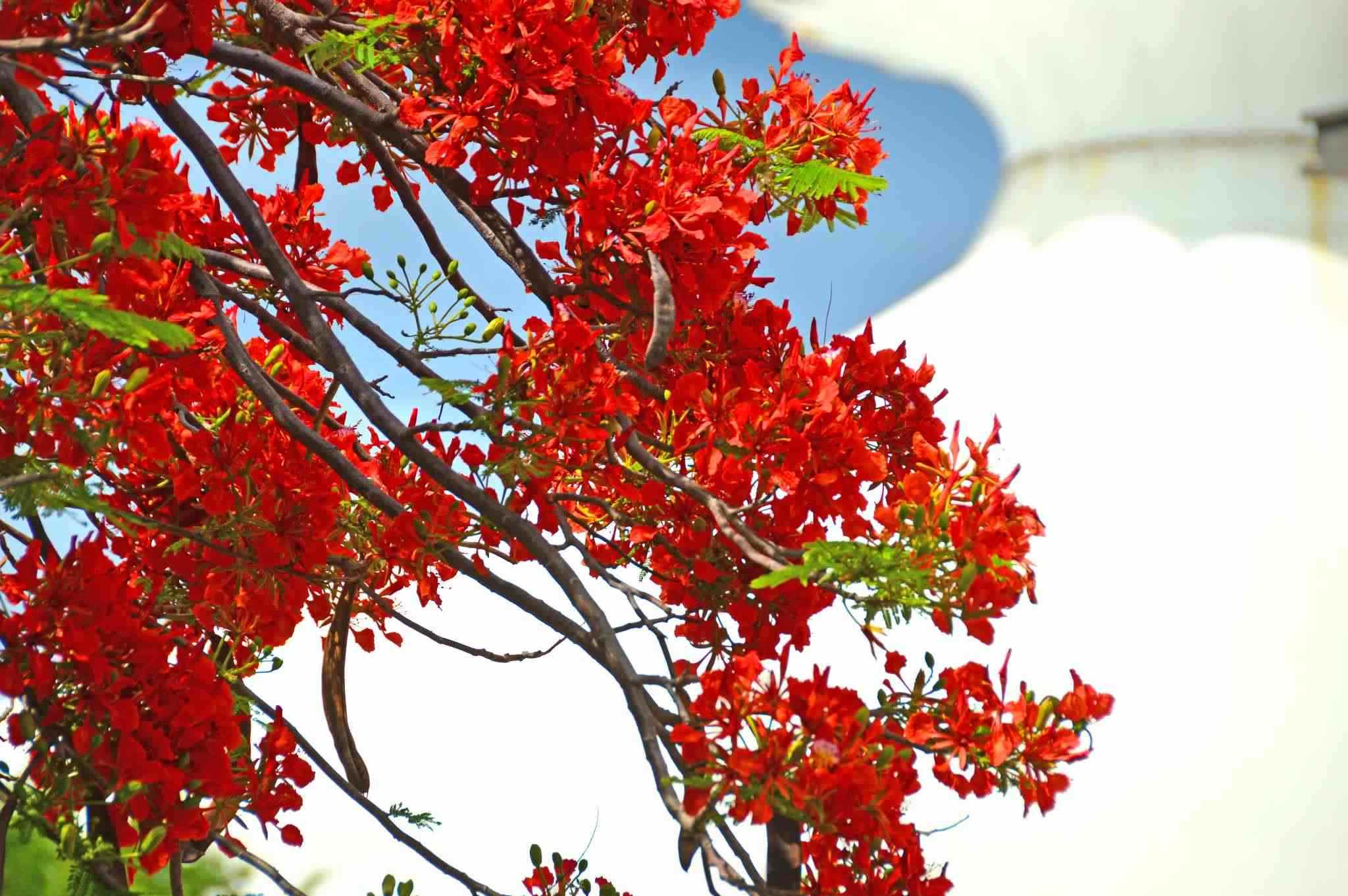 2023年5月9日,三亞,鳳凰路美麗之冠旁,一株株鳳凰樹綻放出紅艷艷的花朵。視覺中國