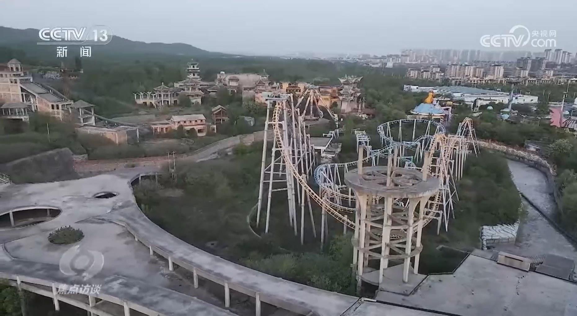 我們沒有找到動漫研發(fā)基地,只找到一個辦公樓,但它沒有一天用于動漫研發(fā),而是個售樓處。動漫基地是這樣,那么主題樂園呢?泰安志高集團在合同中承諾要“建成國內(nèi)一流水準的淮南文化科技動漫產(chǎn)業(yè)園和大型商業(yè)中心”。然而,我們看到的卻是另外一番景象:大部分建筑基本上都已封頂,娛樂設(shè)施也已就位,但是如今卻破敗不堪。