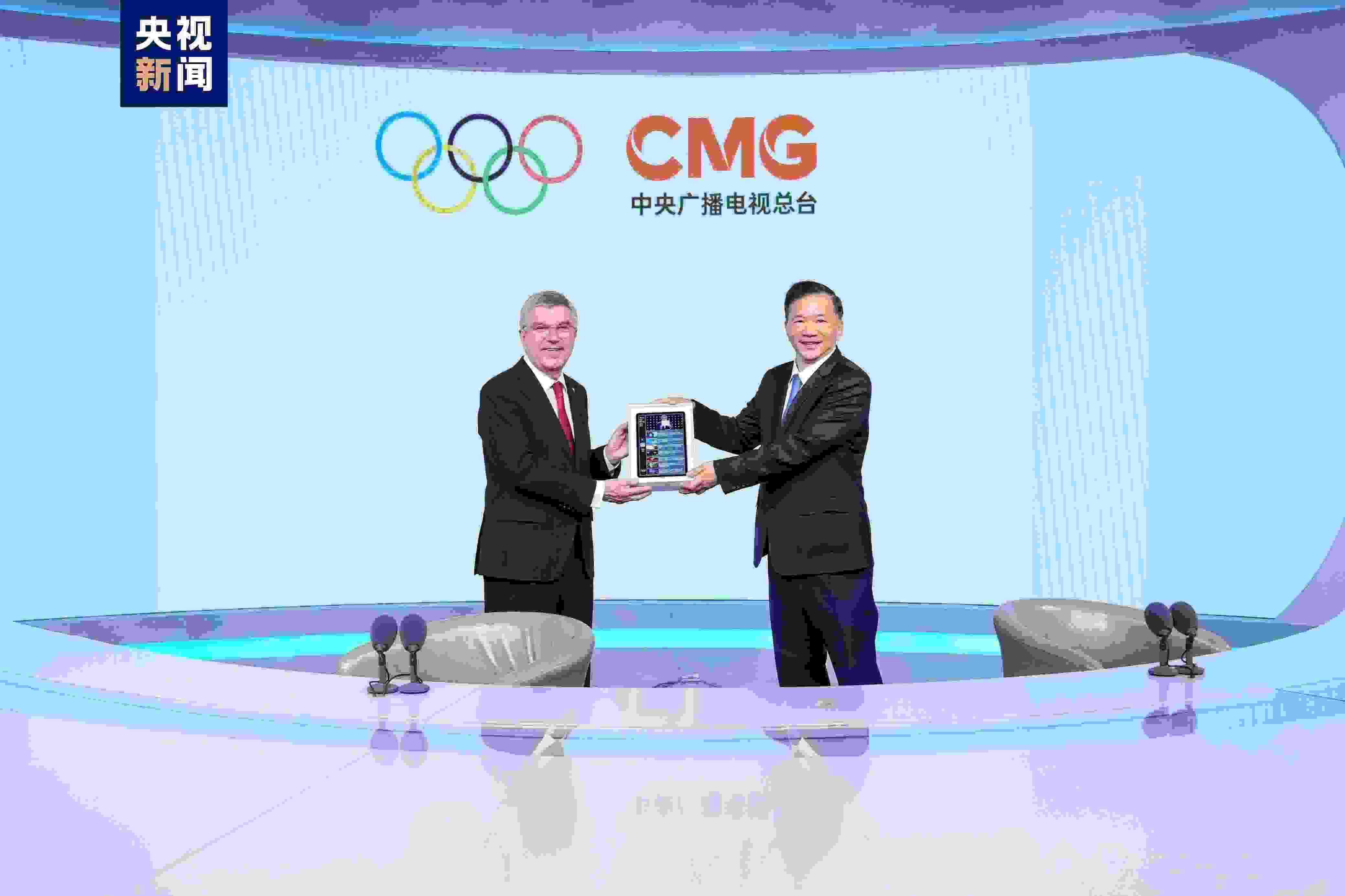 5月6日,國際奧委會(huì)主席巴赫到中央廣播電視總臺(tái)參觀訪問,并就奧運(yùn)轉(zhuǎn)播報(bào)道、新技術(shù)研發(fā)應(yīng)用、奧林匹克文化傳播等話題與中宣部副部長、中央廣播電視總臺(tái)臺(tái)長慎海雄深入交流??偱_(tái)副臺(tái)長邢博,國際奧委會(huì)委員于再清、李玲蔚、張虹,總臺(tái)編務(wù)會(huì)議成員薛繼軍、范昀等陪同參觀。雙方還見證了中央廣播電視總臺(tái)受邀成為巴黎奧運(yùn)會(huì)主轉(zhuǎn)播機(jī)構(gòu)的簽約儀式。