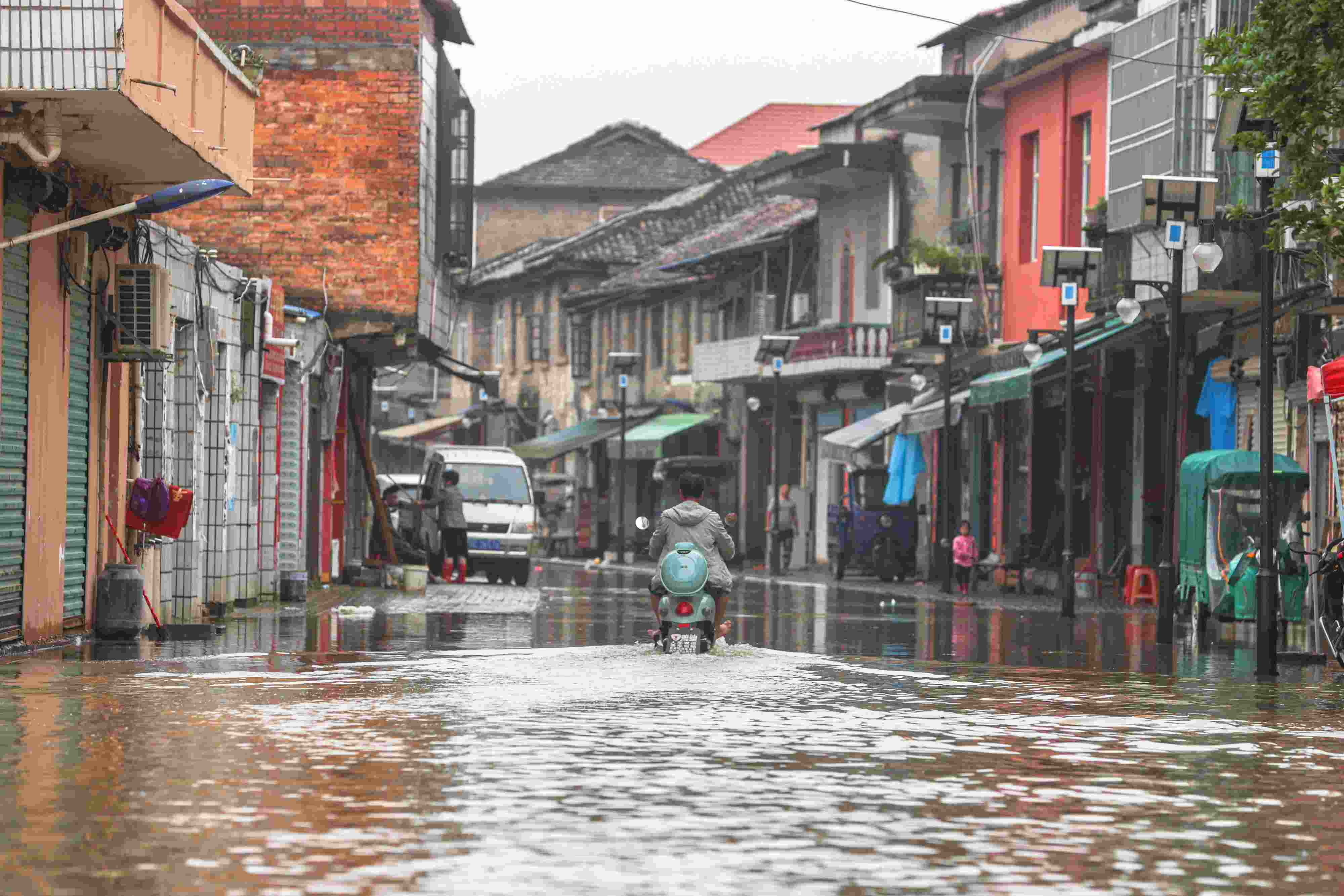 2023年5月6日,江西宜春,豐城市麗村鎮(zhèn)清豐堤河堤附近一村鎮(zhèn)受潰堤影響,出現(xiàn)內(nèi)澇。 視覺(jué)中國(guó)