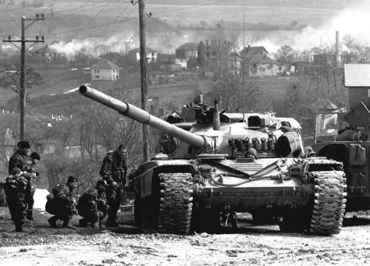 這是1999年3月24日,南聯(lián)盟軍隊的一輛坦克在科索沃省德雷尼察地區(qū)待命,隨時準備戰(zhàn)斗。新華社發(fā)