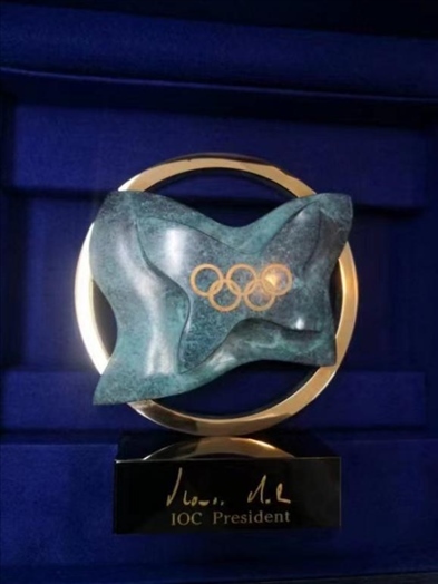 據(jù)介紹,該獎杯由被譽為“當代米開朗基羅”的西班牙國寶級雕塑家Rosa Serra設計制作,基座配有現(xiàn)任國際奧委會主席巴赫的親筆簽名。該獎杯以在瑞士洛桑的國際奧委會總部大樓“奧林匹克之家”為原型設計,大樓為和平鴿造型,象征著和平與友誼,是奧林匹克運動傳遞的最重要信息之一。據(jù)悉,“奧林匹克之家”大樓于2019年6月23日國際奧林匹克日正式啟用。