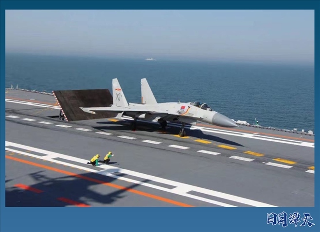 戰(zhàn)機在遼寧艦做起飛準備