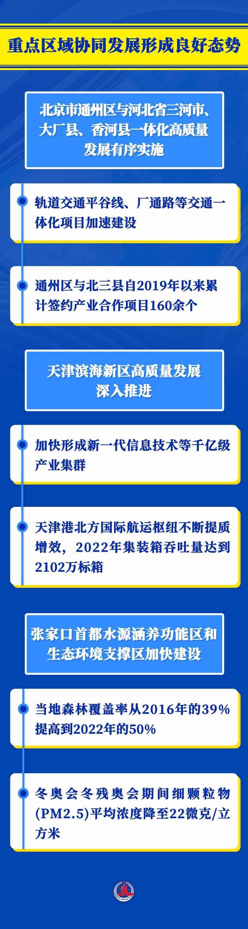 京津冀協(xié)同發(fā)展是一個(gè)系統(tǒng)工程。9年多來,三地?cái)y手發(fā)力,重點(diǎn)區(qū)域協(xié)同發(fā)展步穩(wěn)蹄疾,交通、環(huán)境、產(chǎn)業(yè)、公共服務(wù)等重點(diǎn)領(lǐng)域建設(shè)不斷取得新突破。