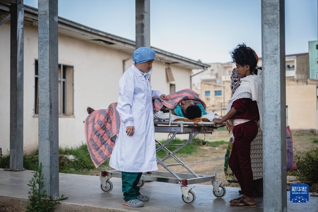 5月9日,在厄立特里亞首都阿斯馬拉的奧羅特醫(yī)院,醫(yī)療隊(duì)神經(jīng)外科醫(yī)生喬松鶴(中)為患者診療。