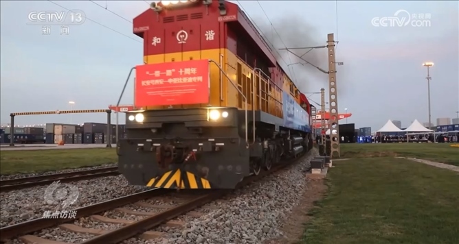 就在上個(gè)月,為紀(jì)念“一帶一路”十周年特別開行的中歐班列——“一帶一路”十周年長(zhǎng)安號(hào)西安—中亞專列從西安國(guó)際港務(wù)區(qū)發(fā)車。2013年11月,首列中歐班列長(zhǎng)安號(hào)正是由這里出發(fā),開往哈薩克斯坦。從這里啟程的長(zhǎng)安號(hào),從最初的年開行46列發(fā)展到去年的4600多列,十年增長(zhǎng)了100倍。十年來,長(zhǎng)安號(hào)累計(jì)開行超過1.6萬列。其中,中亞五國(guó)開行量達(dá)到4250列,為促進(jìn)中國(guó)同中亞互聯(lián)互通與經(jīng)貿(mào)合作發(fā)揮了重要作用。