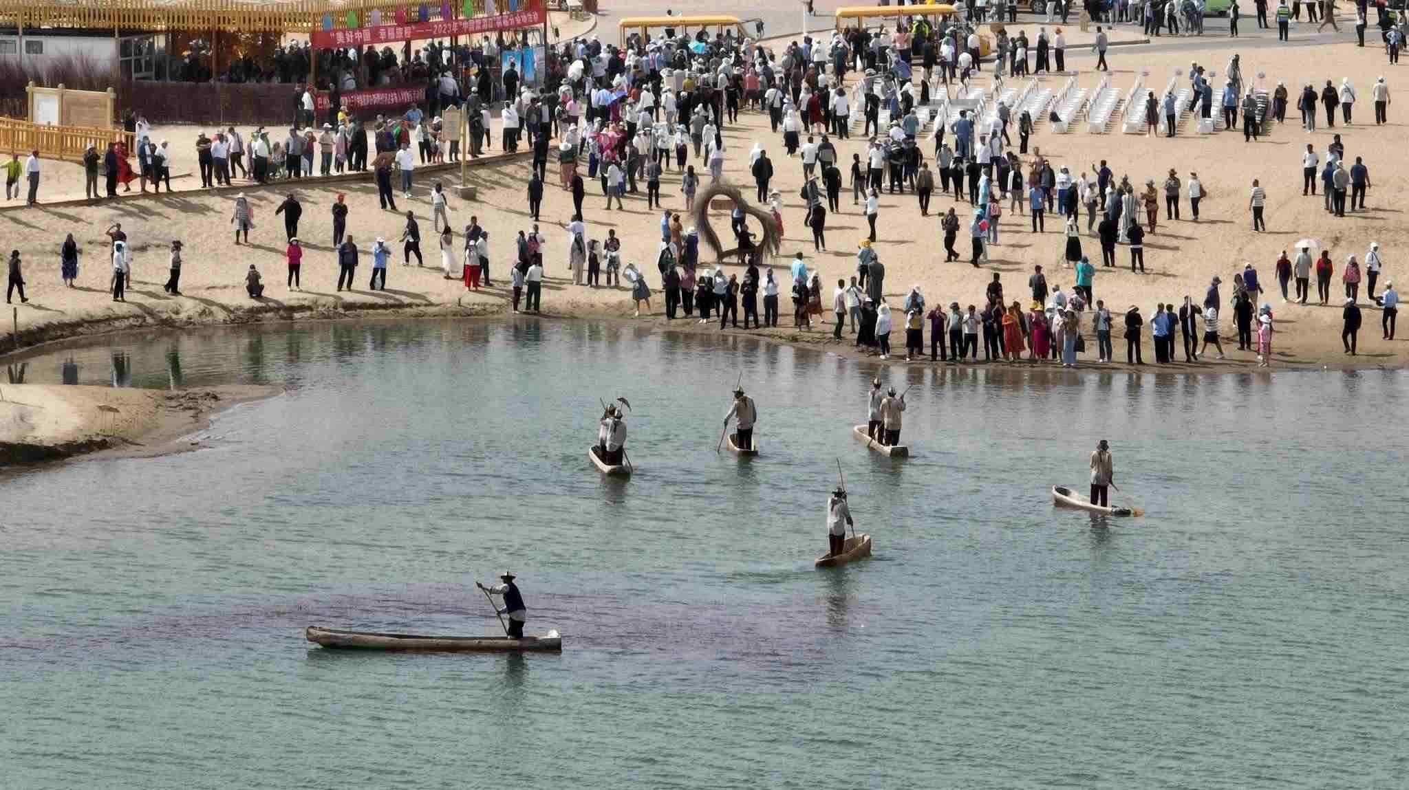2023年5月19日是第13個(gè)“中國(guó)旅游日”。隨著當(dāng)天啟動(dòng)的新疆維吾爾自治區(qū)2023年“5·19中國(guó)旅游日”各項(xiàng)旅游促銷(xiāo)活動(dòng),尉犁縣羅布人村寨一片歡騰,迎來(lái)了入夏首個(gè)旅游高峰。視覺(jué)中國(guó)