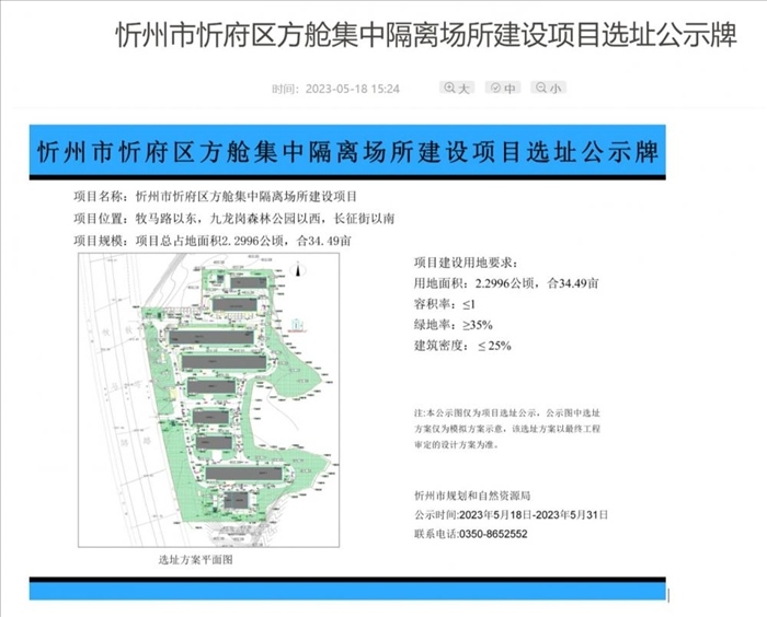 ·山西忻州選址建方艙?官方回應(yīng):方艙已建,選址公示為完善手續(xù)。