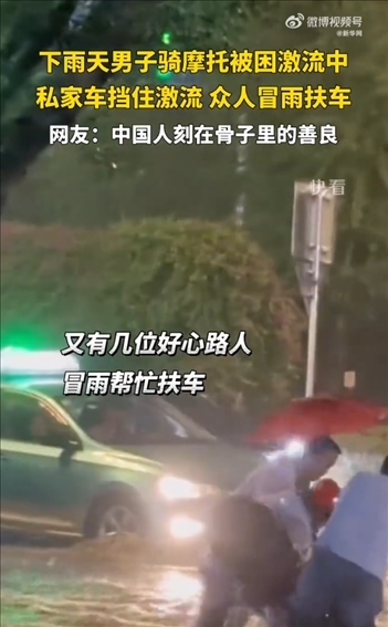 ·小車擋住激流后,眾人救回被困摩托,網(wǎng)友稱這就是中國(guó)人刻在骨子里的善良。
