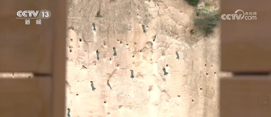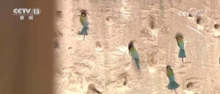 眼前,這些看上去很像是泥巴墻的建筑,其實(shí)是人工建造的候鳥巢穴。根據(jù)栗喉蜂虎的生活習(xí)慣,保護(hù)區(qū)工作人員專門在它們回來(lái)之前就對(duì)懸壁進(jìn)行修整,讓這些美麗的小鳥更方便安家。