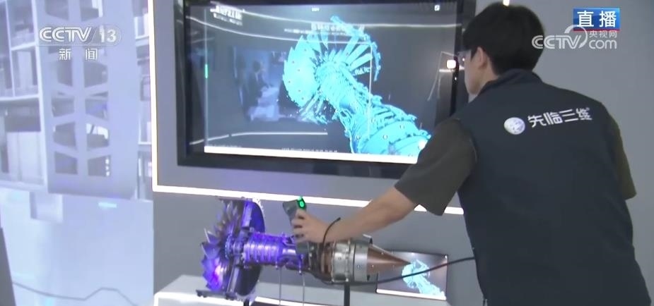 這是一款高精度的手持三維測量設(shè)備,工程師正在測量一款航空發(fā)動機模型的內(nèi)部結(jié)構(gòu),有了尺寸的信息之后,維修就可以根據(jù)內(nèi)部復雜的結(jié)構(gòu)去設(shè)計精準的維修部件。它的難點是要求這款裝備在各種環(huán)境,面對各種材質(zhì)的測量時候,都能夠保持一致性的精度穩(wěn)定性。像汽車、能源裝備的三維尺寸測量,它都能做到,并且實現(xiàn)了研發(fā)、生產(chǎn)到普及應(yīng)用。讓不少制造企業(yè),嘗到了數(shù)字設(shè)備帶來的“甜頭”。