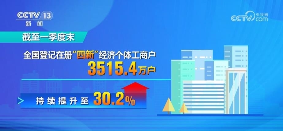 近年來,隨著新技術(shù)、新產(chǎn)業(yè)、新業(yè)態(tài)、新模式的蓬勃發(fā)展,網(wǎng)絡(luò)直播、微商電商等“新個(gè)體經(jīng)濟(jì)”不斷涌現(xiàn),為我國經(jīng)濟(jì)轉(zhuǎn)型升級注入了新的活力。截至一季度末,全國登記在冊“四新”經(jīng)濟(jì)個(gè)體工商戶3515.4萬戶,總量占比由2019年的24.9%持續(xù)提升至30.2%。