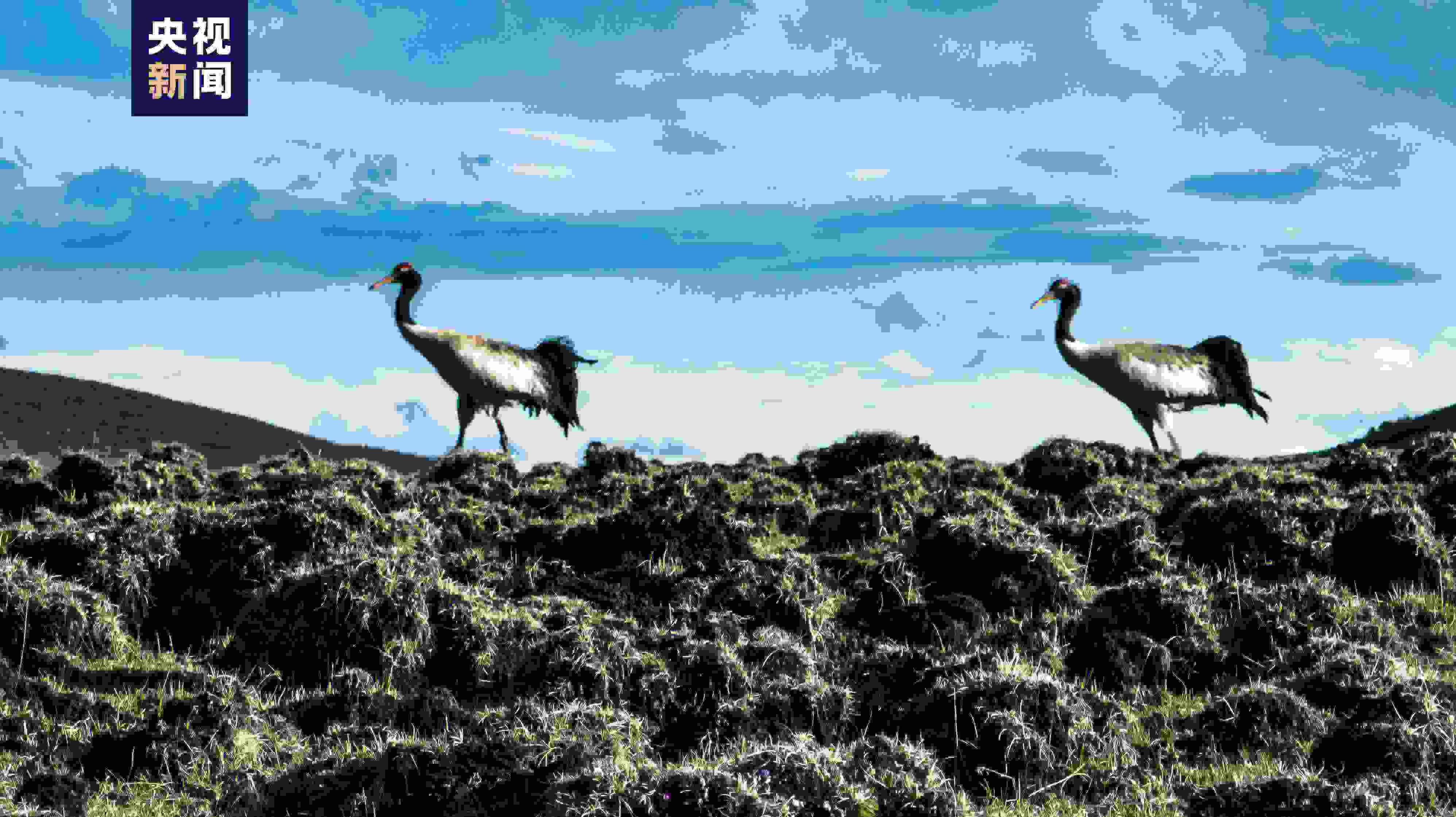 5月22日,四川松潘縣林草局工作人員在尕力臺(tái)濕地例行巡護(hù)時(shí),發(fā)現(xiàn)6只國(guó)家一級(jí)重點(diǎn)保護(hù)野生動(dòng)物黑頸鶴,這是松潘縣內(nèi)首次發(fā)現(xiàn)黑頸鶴“落戶”。據(jù)了解,黑頸鶴需要潔凈而開(kāi)闊的濕地環(huán)境作為棲息地,是對(duì)濕地環(huán)境變化極為敏感的指示生物。