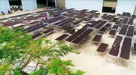 不過,光有精品鮮果還不夠,接下來的每一個(gè)加工環(huán)節(jié)都要精益求精才行。清洗、篩選、去皮、晾曬、精選分級(jí),在這個(gè)專業(yè)加工廠里,鮮果經(jīng)過多道工序后變成咖啡米,之后再被送往精深加工企業(yè)。