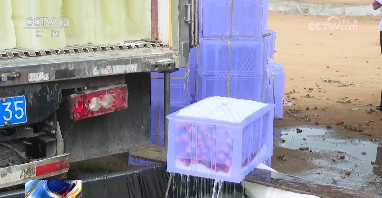 這邊采購商前腳剛走,梁康連就來到荔枝分揀打包中心?,F在這里剛采摘下來的荔枝,分選打包后,要放到冰水里浸泡一個小時以上,再裝上冷鏈車物流運輸保證荔枝的新鮮度。