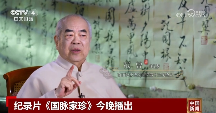 紀錄片《國脈家珍》從南通范氏詩文世家第十三代傳人范曾的視角,還原家族成員個性鮮明、造詣深厚的傳奇故事。他們或居于廟堂,持守高風(fēng)峻節(jié),或隱于江湖,揮灑豪詩雄文,呈現(xiàn)“國運與家事榮辱相伴,時局與詩筆悲喜相連”的人物命運。該片結(jié)合歷代傳人的詩文,反映中國傳統(tǒng)文化綿延不息,展現(xiàn)范氏家族家風(fēng)家教的細節(jié),探尋其延續(xù)的密碼。