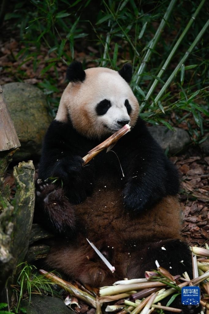 5月29日,在成都大熊貓繁育研究基地都江堰野放繁育研究中心,梅蘭在吃竹筍。當日是大熊貓梅蘭的7歲生日,成都大熊貓繁育研究基地都江堰野放繁育研究中心為它準備了生日大餐。