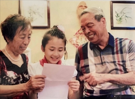△浙江臺(tái)州市椒江區(qū)學(xué)生張婧怡與爺爺奶奶分享習(xí)近平總書(shū)記的回信。