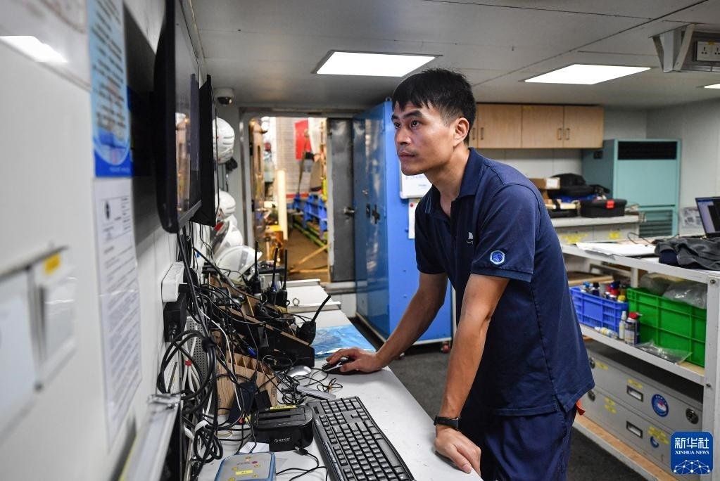 近日,由國家文物局考古研究中心、中國科學院深??茖W與工程研究所、中國(海南)南海博物館聯(lián)合組成的深海考古隊搭乘“探索一號”科考船,在南海西北陸坡一號、二號沉船遺址海域進行第一階段調(diào)查。該科考船載有“深海勇士”號載人潛水器,用于水下考古數(shù)據(jù)采集。新華社記者隨船跟訪,直擊調(diào)查一線。