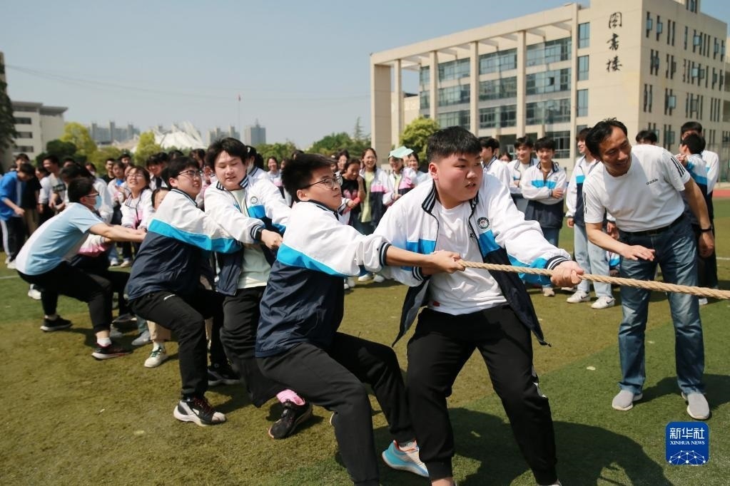 高考臨近,安徽省淮北市第十二中學組織高三年級學生開展豐富多彩的集體減壓活動,讓學生們在趣味游戲中釋放壓力,以輕松、樂觀、自信的心態(tài)迎接高考。新華社發(fā)(萬善朝 攝)