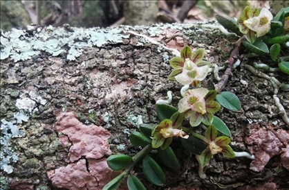 蘭科新物種——臥龍無柱蘭,于2021年11月發(fā)表于國(guó)際植物學(xué)期刊《北歐植物學(xué)》,是程躍紅和林紅強(qiáng)等人在轄區(qū)巡護(hù)監(jiān)測(cè)過程中發(fā)現(xiàn)的,以模式產(chǎn)地“臥龍”命名。該蘭科植物生長(zhǎng)在海拔2700米左右的陡峭崖壁上,植株高約19-22厘米,花期7-8月,莖為呈紫紅色,開白色小花,中心為綠色,目前僅在大熊貓國(guó)家公園臥龍片區(qū)發(fā)現(xiàn)1個(gè)居群,約70株成熟個(gè)體,參照IUCN(世界自然保護(hù)聯(lián)盟)的標(biāo)準(zhǔn),臥龍無柱蘭被認(rèn)定為“極度瀕?!钡燃?jí)的植物。